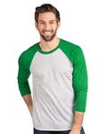 Next Level Unisex 4.3 Ounce Tri-Blend 3/4 Sleeve Raglan. 50/25/25% poly/combed ring-spun cotton/rayon tri-blend jersey fabric, 32 singles 4.3 ounce. Set-in collar 1x1 baby rib with front cover stitch. Satin label. With a heather look for all colors.